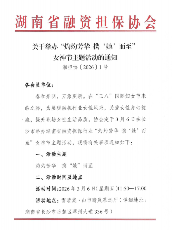 湖南省融资担保行业“灼灼芳华 携‘她’而至”女神节主题活动报名表【点击下载】